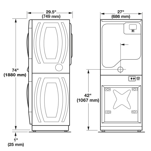 AHORRA ESPACIO Y RECORTA LOS COSTOS DE SERVICIOS PÚBLICOS. Nuestra lavadora y secadora apiladas le ofrecen una lavadora de alta eficiencia y una secadora de gran capacidad en el mismo espacio que ocuparía una lavadora sola. Además la calificación de ENERGY STAR® significa que ahorrará en sus facturas.